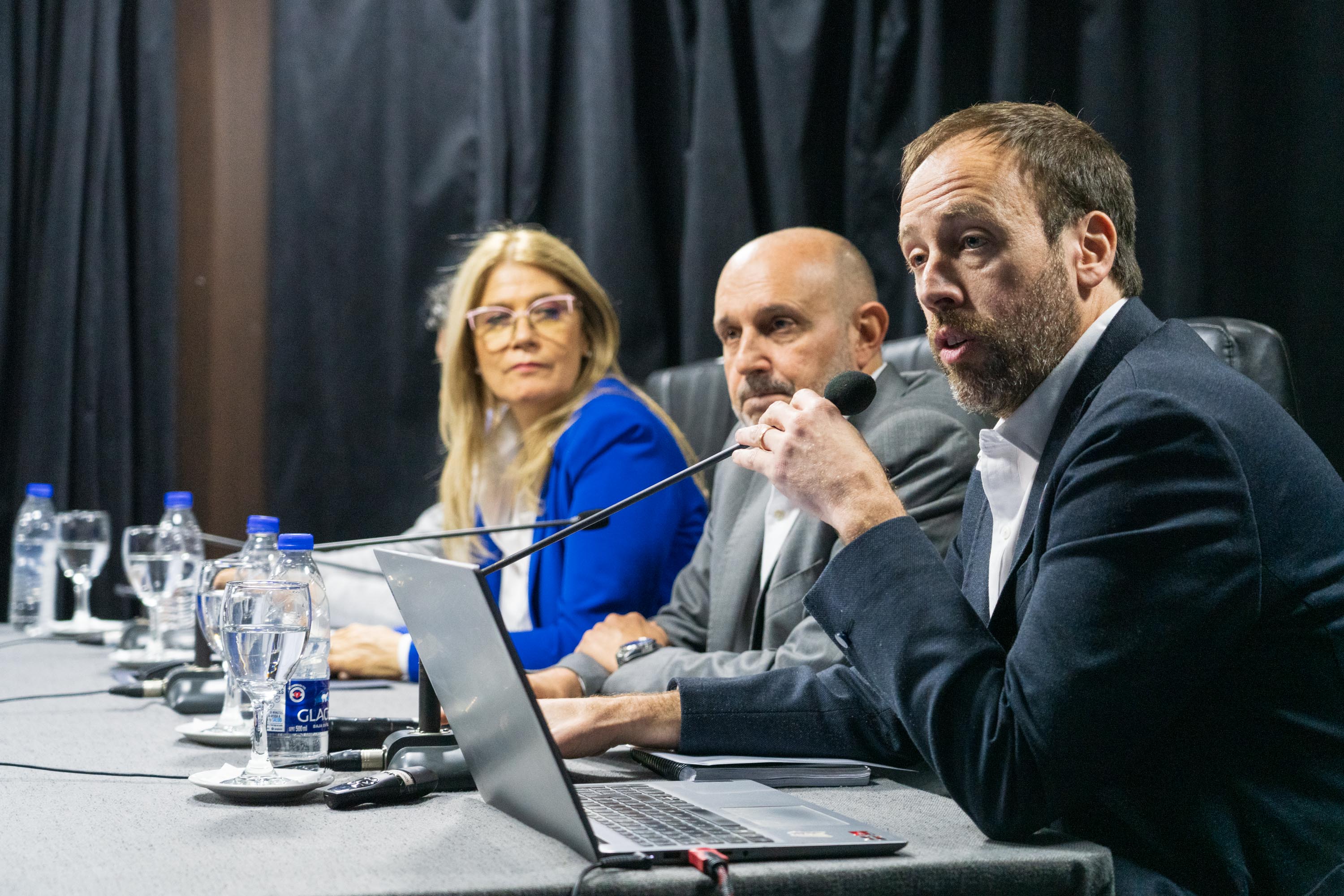 Por su parte, el director Ejecutivo de ARBA, Cristian Girard, brindó detalles de la Ley Fiscal Impositiva 2026: “Lo que buscamos en este proyecto es profundizar la progresividad en la recaudación de los impuestos patrimoniales, y seguir imprimiendo una visión pro producción y empleo a la recaudación de ingresos bruto”.