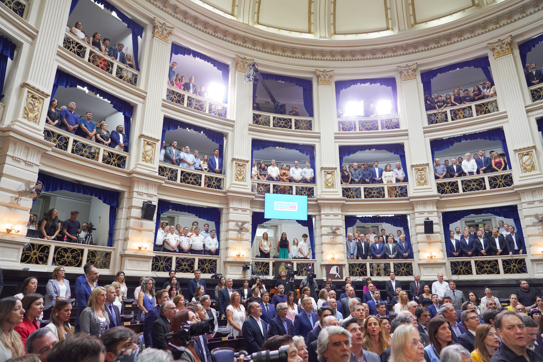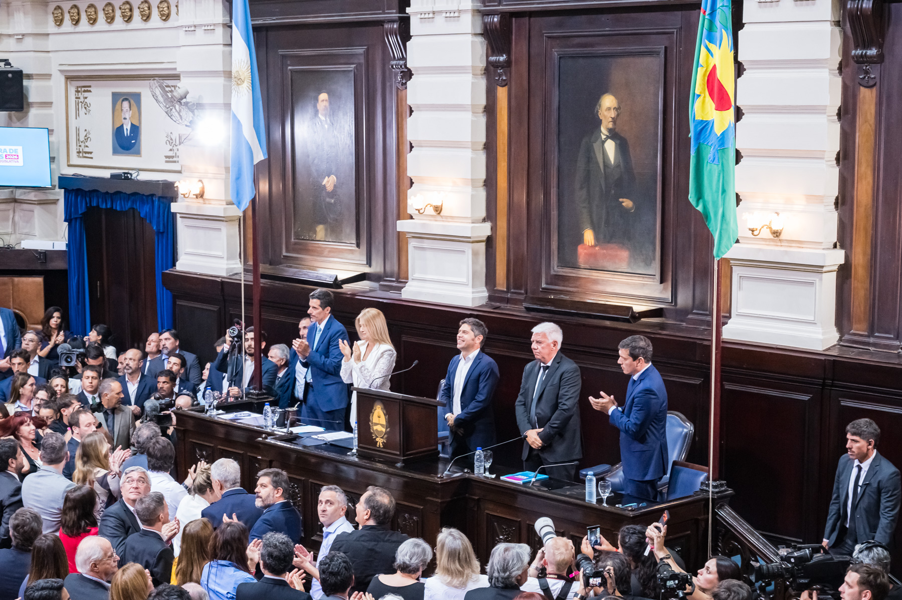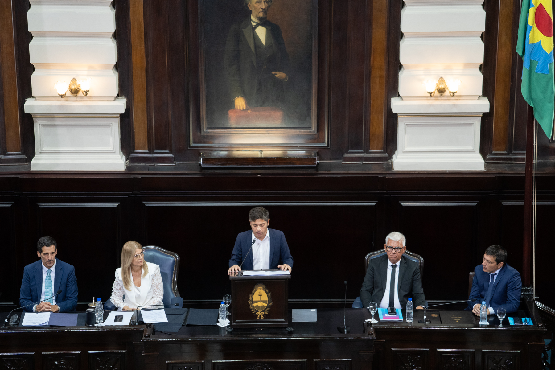 El mensaje del mandatario, que se dirigió "al pueblo de la Provincia", lo presenció además del cuerpo de diputados y de senadores, la Presidenta de la Suprema Corte de Justicia de la provincia, Hilda Kogan; el ex gobernador Felipe Solá; el intendente de la ciudad capital, Julio Alak; funcionarios de los tres poderes del Estado provincial y Madres y Abuelas de Plaza de Mayo, entre otras personalidades.