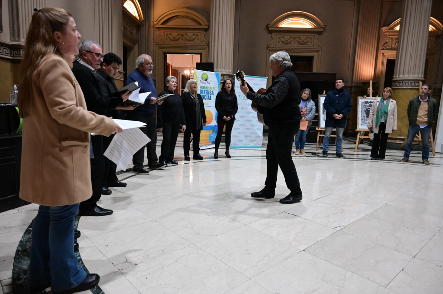 El acto de apertura estuvo encabezado por el diputado Ariel Archanco, la presidenta de la Fundación Para la Defensa Social (FUDESO), Marcela Pastore -organizadores de la exhibición-, el artista, Paz Bertero, secretaria General de la presidencia de la HCD y Ana Negret, concejal de La Plata. De la actividad participó, además, el coro popular de IOMA, que dirige Santiago Bucar.