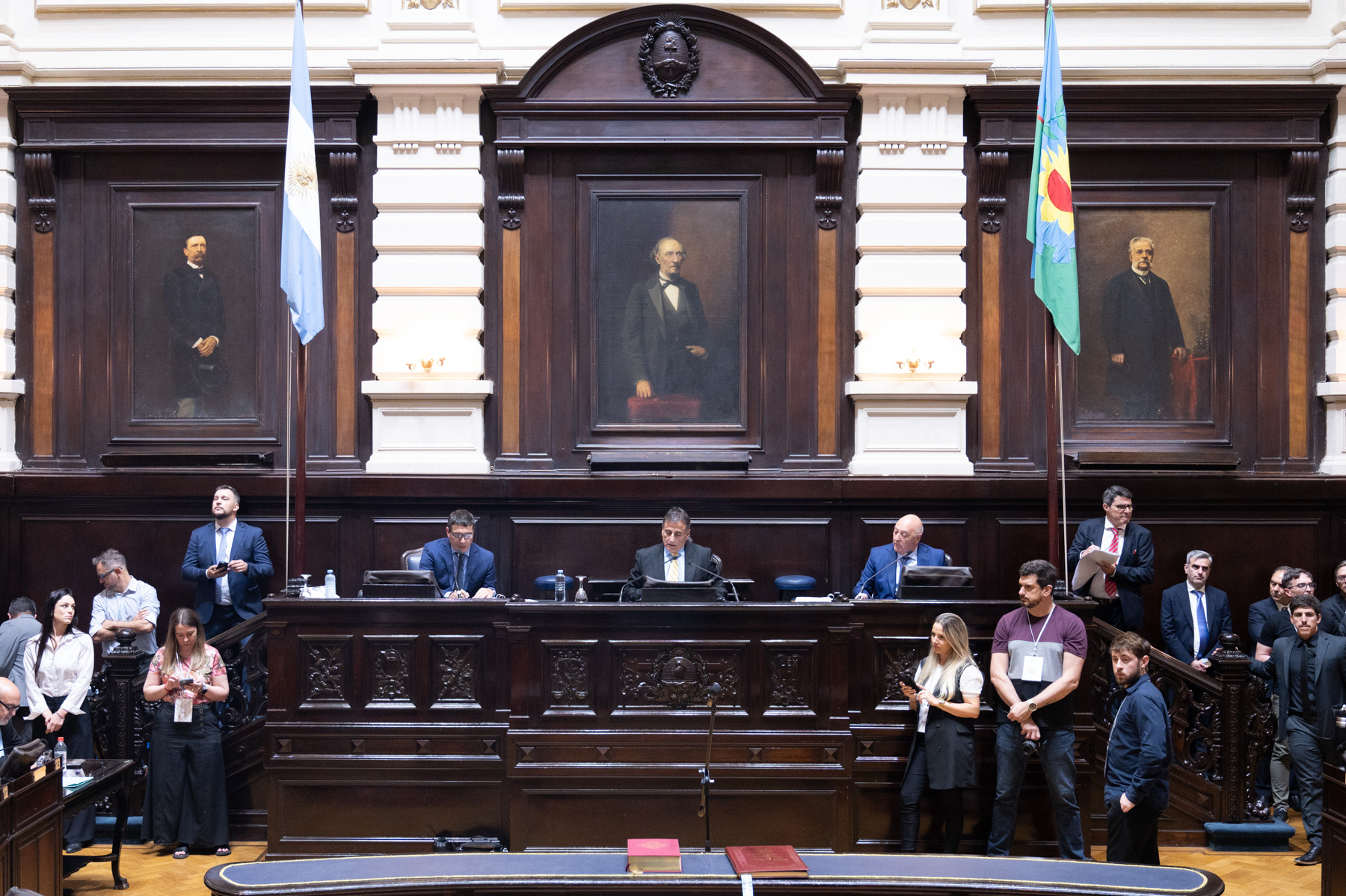 A continuación, se llevó a cabo la Sesión Preparatoria, en la que el presidente del cuerpo, Alexis Guerrera, cedió su lugar a Rubén Eslaiman como Presidente Provisional, de acuerdo a lo establecido en el reglamento. De esta manera, el legislador oriundo de San Martín fue quien tomó juramento a los y las 46 diputadas electas ante un recinto con sus palcos colmados por familiares y militantes.